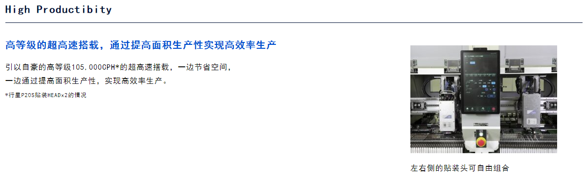 雙貼片頭規(guī)格,實現(xiàn)最高等級的高速貼裝和面積生產(chǎn)性